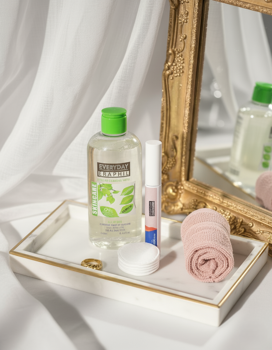 For makeup removal, soak a cotton pad with the product and gently press against closed eyelids and lashes to dissolve makeup, then wipe away. For the lash serum benefit, apply a small amount to clean, dry lash lines (like eyeliner) every evening. Do not rinse.